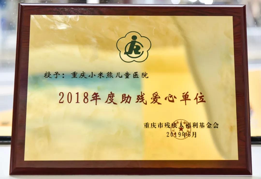 重庆小米熊儿童医院获“助残爱心单位”称号,儿童疾病公益救助不会停