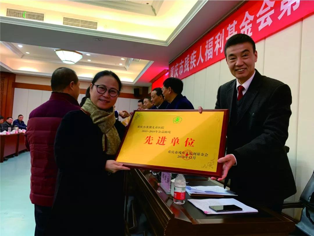 这是重庆小米熊儿童医院继获得“2013—2018年公益助残先进单位”之后在扶助特殊疾病儿童、关爱儿童致残疾病方面的又一个殊荣。